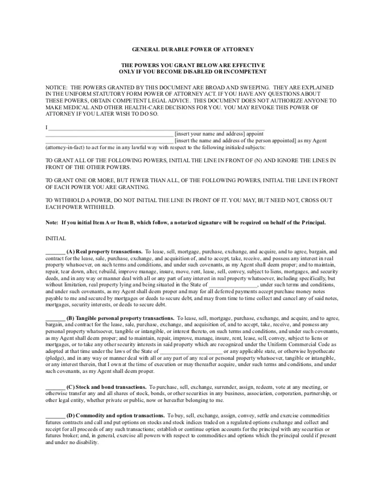 Der Bevollmächtigte darf keine Begünstigungen ändern, Nachlasspläne abändern oder Testamente im Namen des Erstellers ändern. Er hat auch keine Rechte, die den Ersteller überdauern. Jegliche Befugnisse können dem Bevollmächtigten entzogen werden, indem die in einer allgemeinen Vollmachtsvorlage enthaltenen Formulierungen einfach entfernt werden.