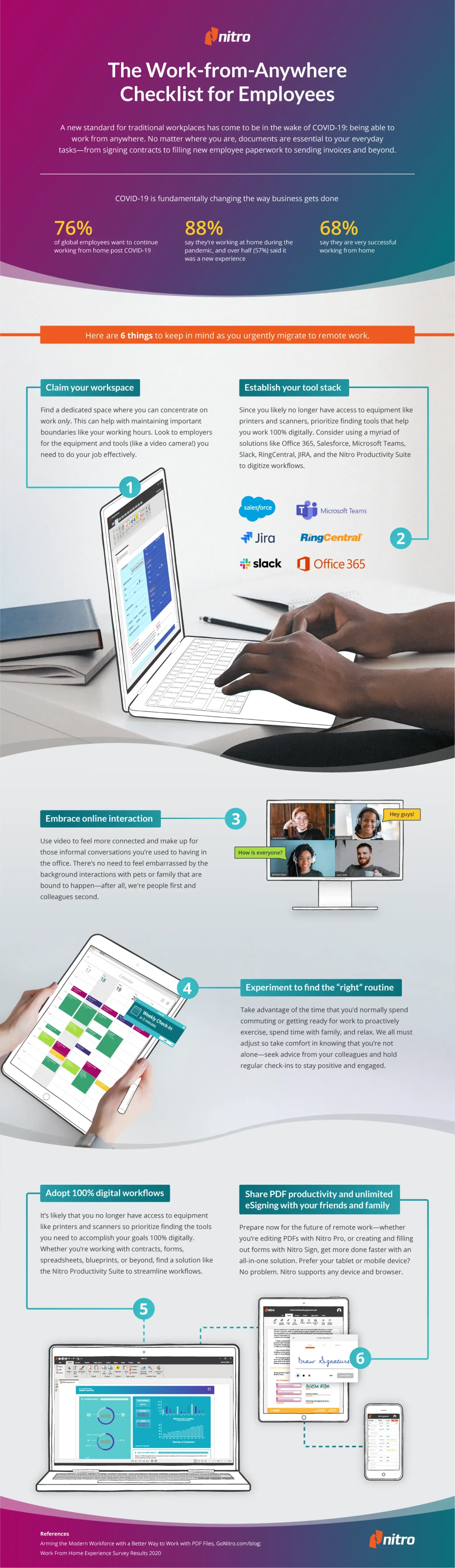 Para lograr sus objetivos al 100% digitalmente, necesita un conjunto tecnológico confiable y robusto. Esta infografía comparte las mejores prácticas sobre trabajar desde cualquier lugar porque, seamos realistas: COVID-19 está cambiando fundamentalmente la forma en que se hacen los negocios.