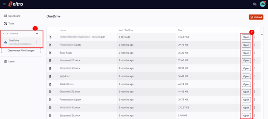 1. OneDrive integration: Navigate to Workspace > File Storage > OneDrive > Click "Open" on any PDF, image, or Office files.