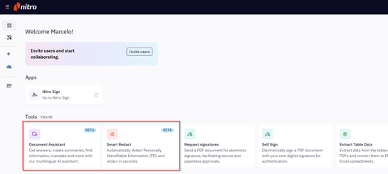 3. Document Assistant and Smart Redact: Access from your Workspace homepage. Upload or drag and drop any PDF, image, or Office files.
